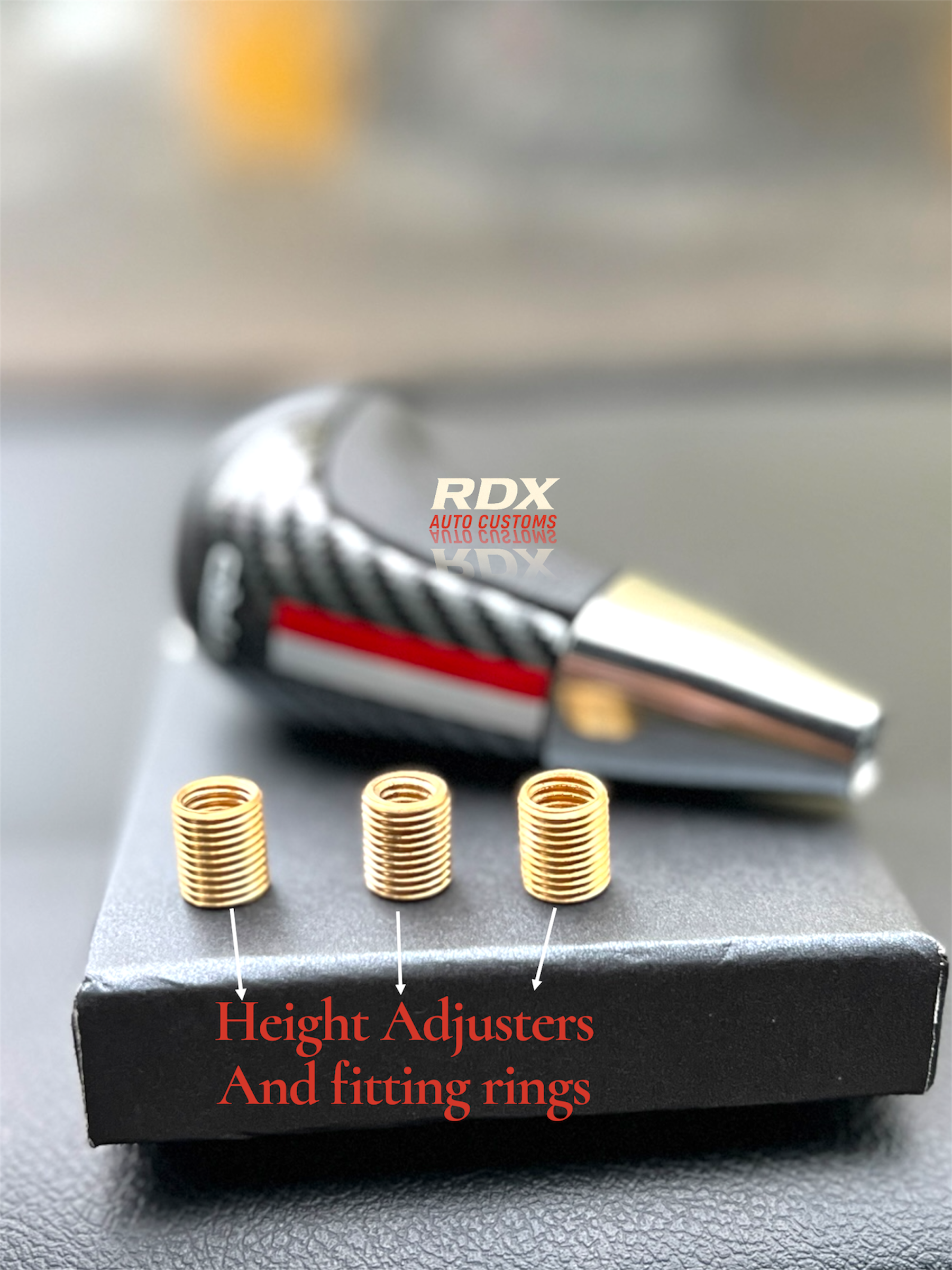You can also adjust the height of the gear knob with the provided rings that fit perfectly onto the company gear lever!